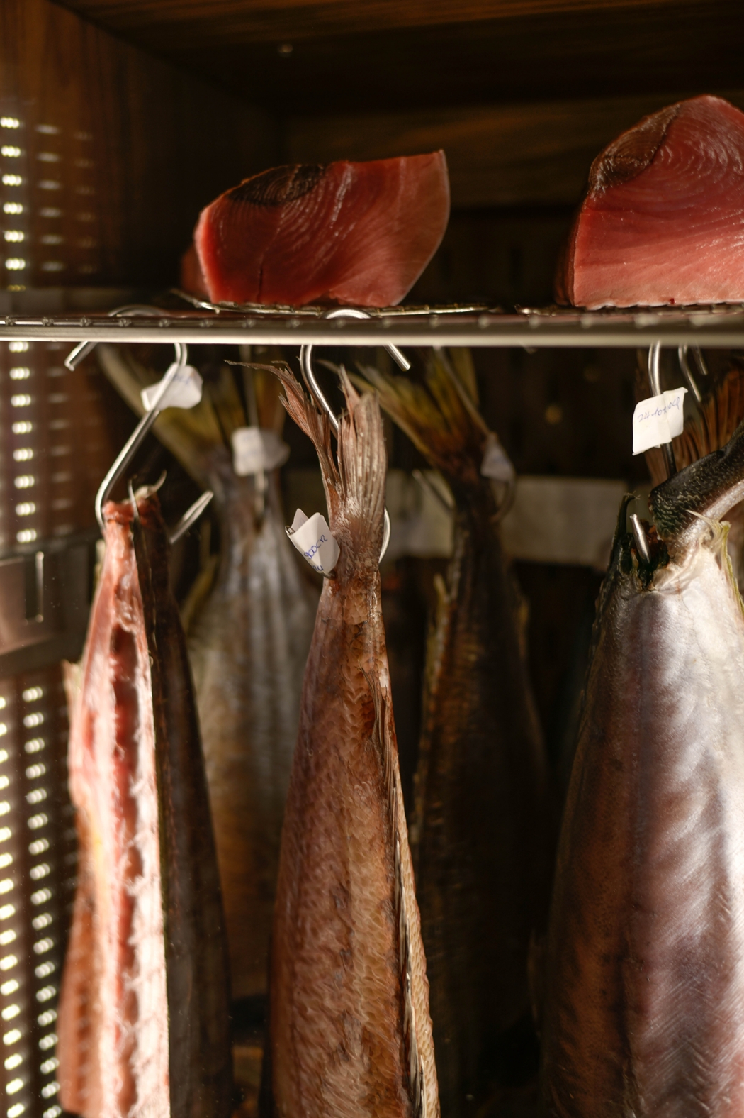 Attraverso un controllo preciso di tempo, temperatura e umidità, la carne del pesce matura lentamente, sviluppando profondità aromatiche e nuove consistenze.